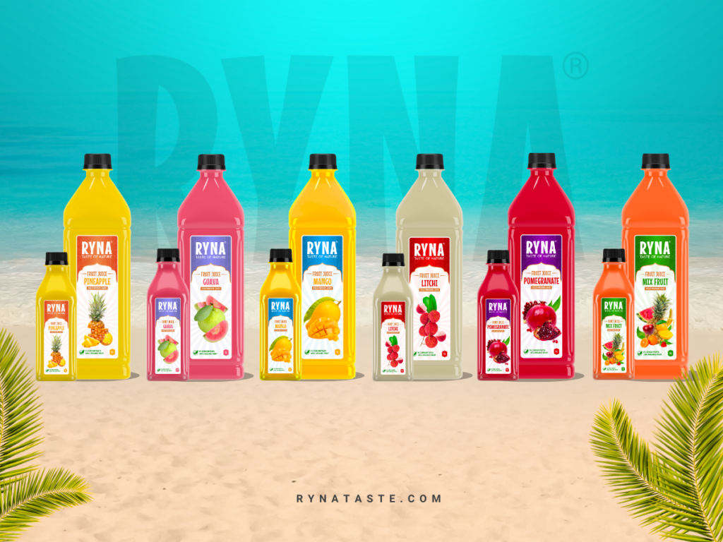 RYNA Juice offers a symphony of flavors, including Mango, Litchi, Guava, Pineapple, Pomegranate, and Mix Fruit, each telling a unique story of the land it hails from.