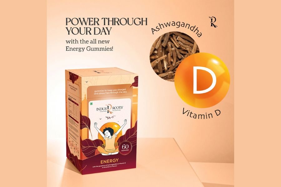 Indus Roots, committed to bringing about a new healthy life through health supplements, brings to you the new Energy Boosting Gummy – Ashwagandha & Vitamin D Supplement. As the name suggests, this supplement is rich in ashwagandha and vitamin D, both of which help provide sustained energy levels, enhance metabolism, and improve mental alertness, thus lowering stress and anxiety.