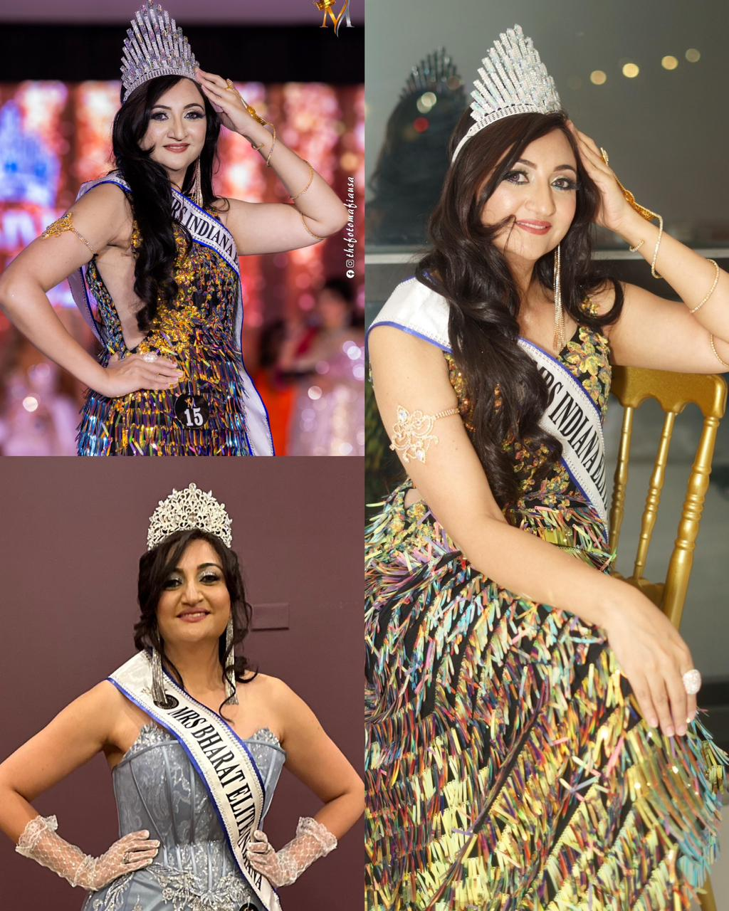 These titles highlight her elegance, confidence, and dedication to empowering women. Her journey began with notable achievements like being crowned Mrs. Indiana Worldwide Popular 2024 and securing the Runner-Up position in Mrs. Indiana 2024.