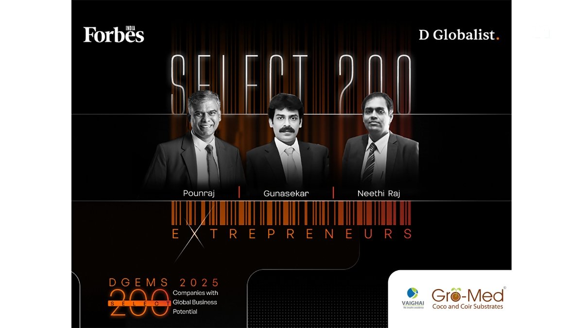 Madurai (Tamil Nadu) [India], December 30: Gro-Med, the flagship brand of Vaighai Agro, is featured in the Forbes India DGEMS 2025 Select 200 for its leadership in sustainable soilless farming solutions and global impact on modern horticulture.